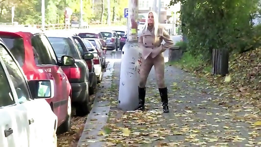 Public showcasing exhilarates the pretty lady with ultra-cute congenital fun bags