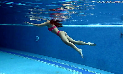 Solo honey Milka Wey plays in the pool and globs her sexy bikini