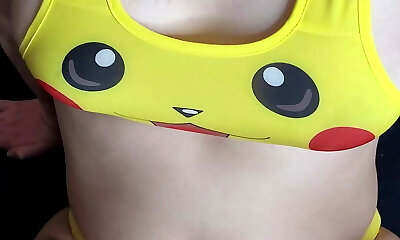 Hot French girl doing Pikachu cosplay getting poked