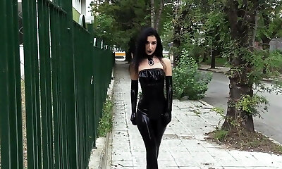 Mature Giant Tit Goth Plays With Her Nips With Leather Gloves