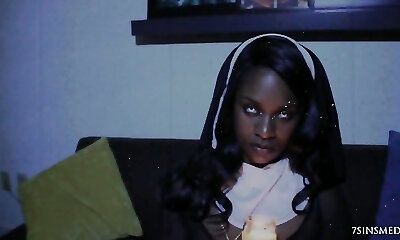 Goth step-sister gets creampied while the portrait of Jesus gazes down in sadness