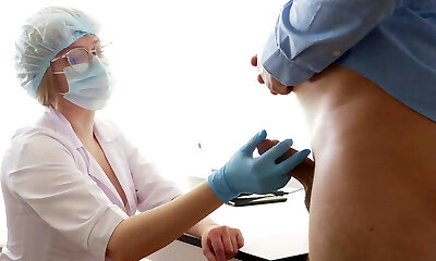 Huge-titted Doctor milking the prostate. Stuck her finger up the culo