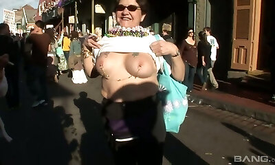 Lustful chicks are flashing their juicy natural boobs outdoor