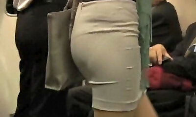 Spycam Micro-skirt and heels in train